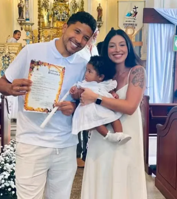 A cantora Iza e o jogador Yuri Lima batizaram a filha, Nala, no domingo, no Santuário da Penha, uma das igrejas mais tradicionais, e localizadas na Zona Norte do Rio de Janeiro.