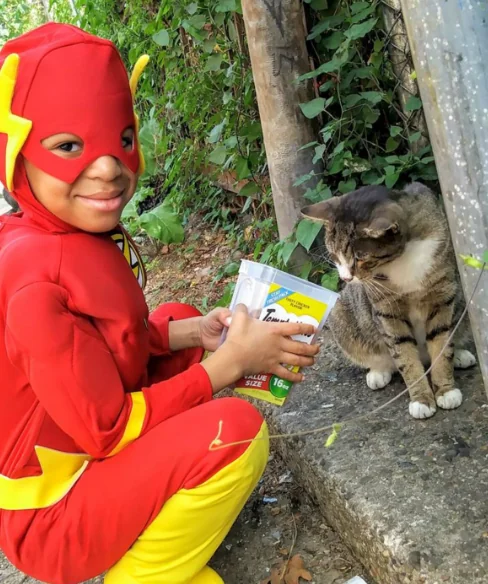 Com apenas 5 anos, um garotinho de Campinas (SP) está chamando atenção ao se vestir como super-herói para uma missão inusitada: resgatar gatos de rua. Fantasiado com capa, máscara e muita empolgação, o pequeno Samuel decidiu transformar sua paixão por animais em atitude. Ele percorre bairros da cidade em busca de felinos abandonados e os leva até sua casa, onde recebe a ajuda da mãe para cuidar dos bichinhos.
