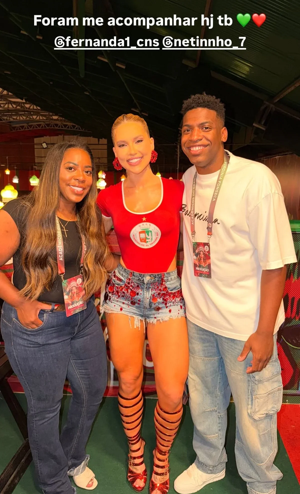 Nos stories do Instagram, Virginia mostrou momentos da chegada à quadra da escola de samba, cantando o samba-enredo ao lado de amigos e familiares. Na legenda, ela escreveu: “Foram me acompanhar hoje também”, junto de emojis com as cores da Grande Rio. A presença constante de Fernanda Cristina nos eventos da nora tem chamado atenção. No último domingo (30/11), ela também esteve presente em um minidesfile da agremiação, onde Virginia apresentou o resultado de suas aulas de samba com Carlinhos Salgueiro na Cidade do Samba.
