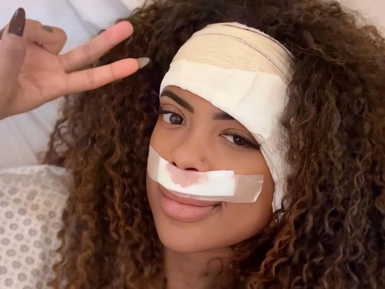 Marvvila faz sinal de paz no hospital após cirurgia de remoção de tumor no ouvido e correção do septo nasal (Foto: Instagram)
