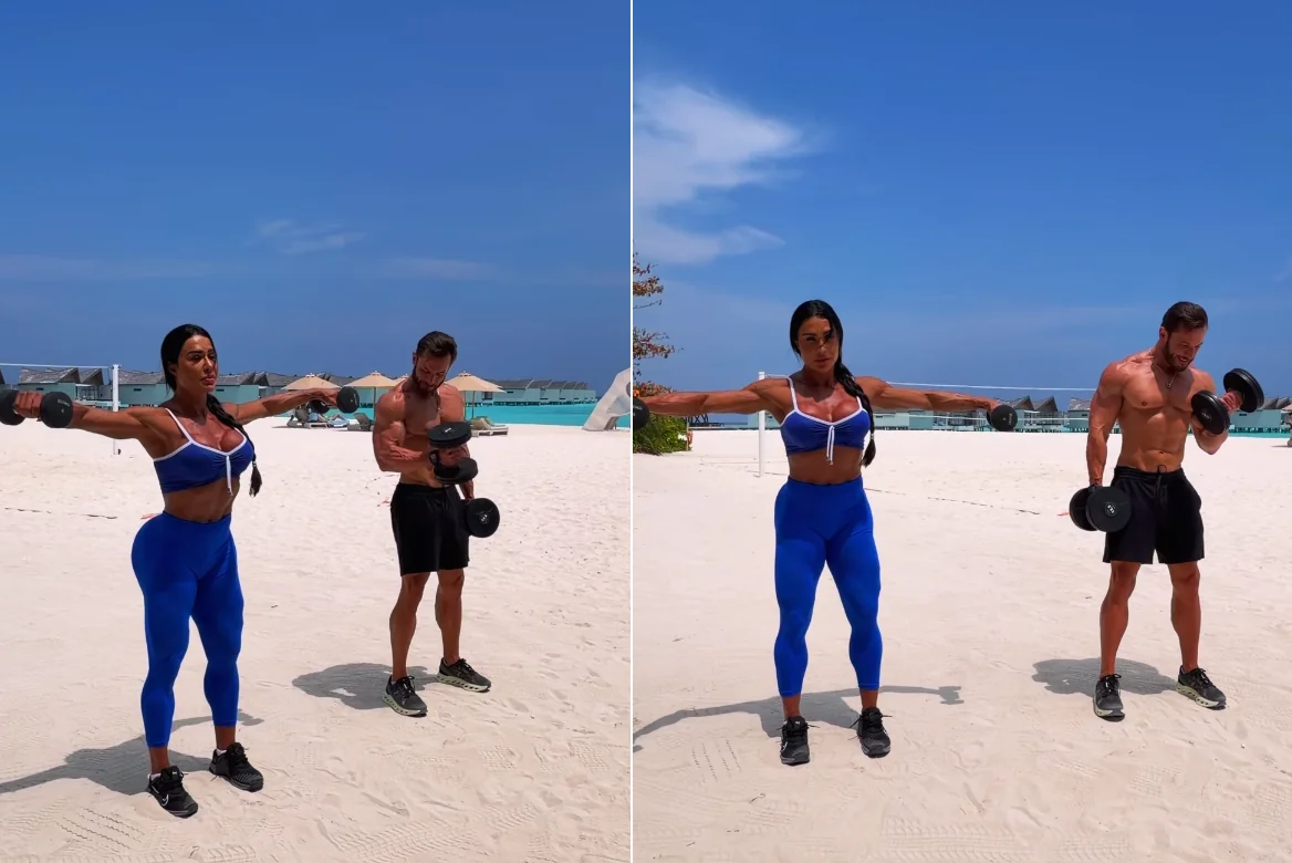Em celebração ao Dia Internacional do Beijo, a influenciadora reuniu registros inéditos de viagens românticas e da rotina de treinos do casal. Na legenda do post publicado no Instagram, ela relembrou o início do relacionamento e a química imediata com o parceiro.